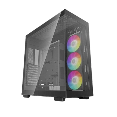 Три фронтальных RGB-вентилятора создают эффектную подсветку и обеспечивают эффективное охлаждение. Корпус поддерживает до 7 вентиляторов и радиаторов, что позволяет собрать мощную систему с высоким тепловыделением.