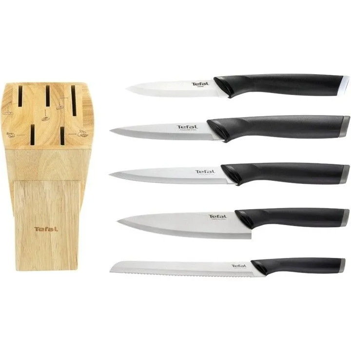 Набор кухонных ножей TEFAL K221SA04 — это универсальный комплект из 5 предметов, который станет незаменимым помощником на вашей кухне. Каждый нож обладает острыми лезвиями и удобной эргономичной рукояткой, что обеспечивает точную и безопасную нарезку продуктов — от мягких фруктов и овощей до мяса и хлеба.